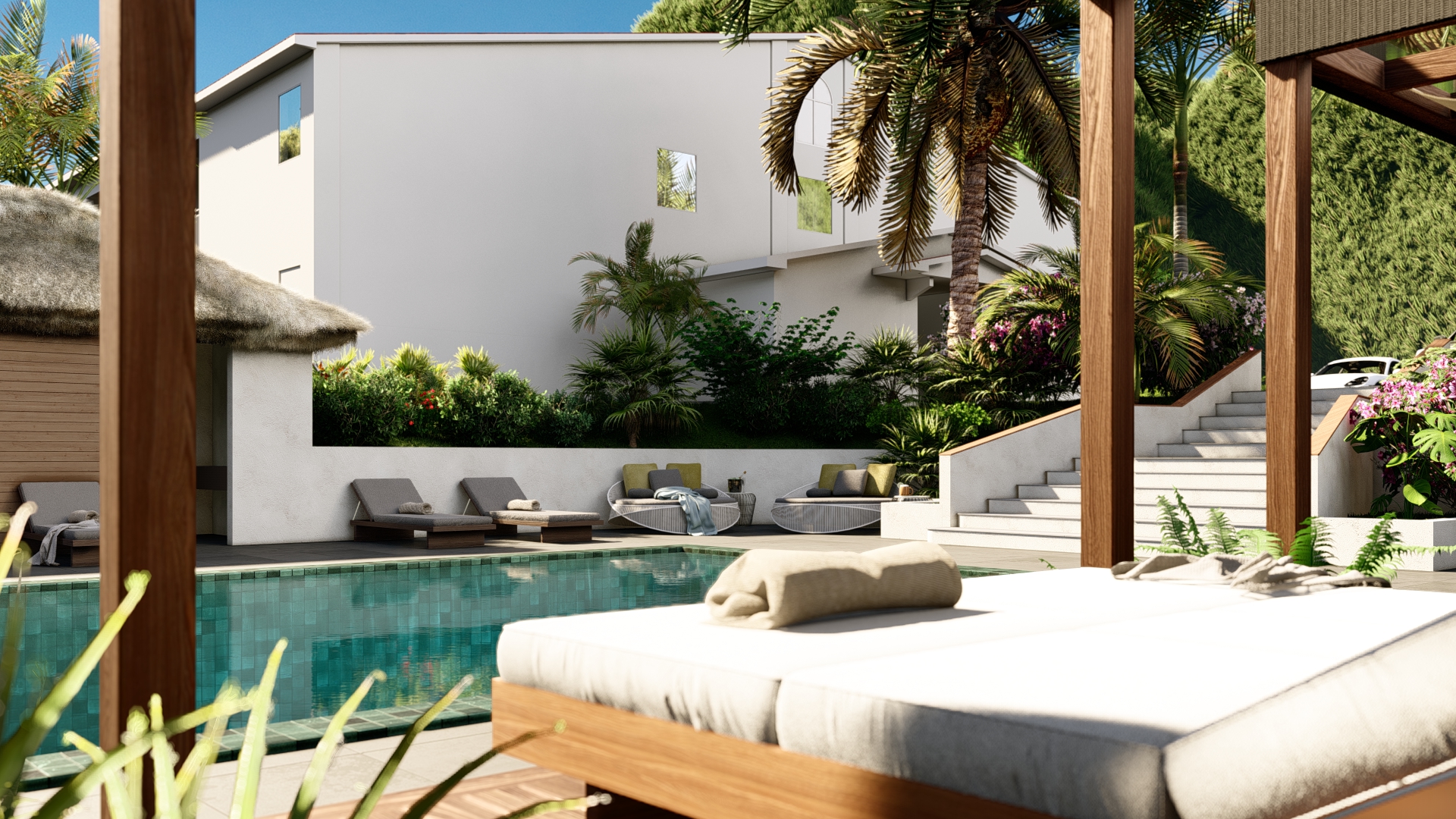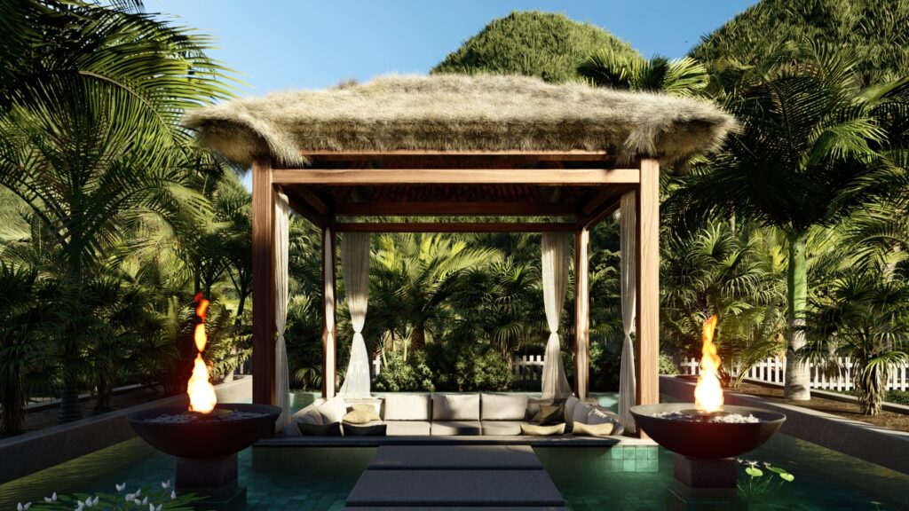 The project is rooted in a profound respect for its surroundings: natural materials, warm woods, and finishes that highlight the authenticity of the place. The connection with nature is not only visual but sensorial, reflected through elements that evoke the four pillars of life: air, fire, earth, and water. Architecture does not compete with the jungle; it accompanies it, becoming a harmonious extension of its essence.